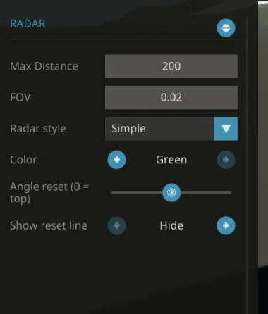 - Angle reset (0 - 359 | if the rotation of the radar goes past this line, it will clear the targets)