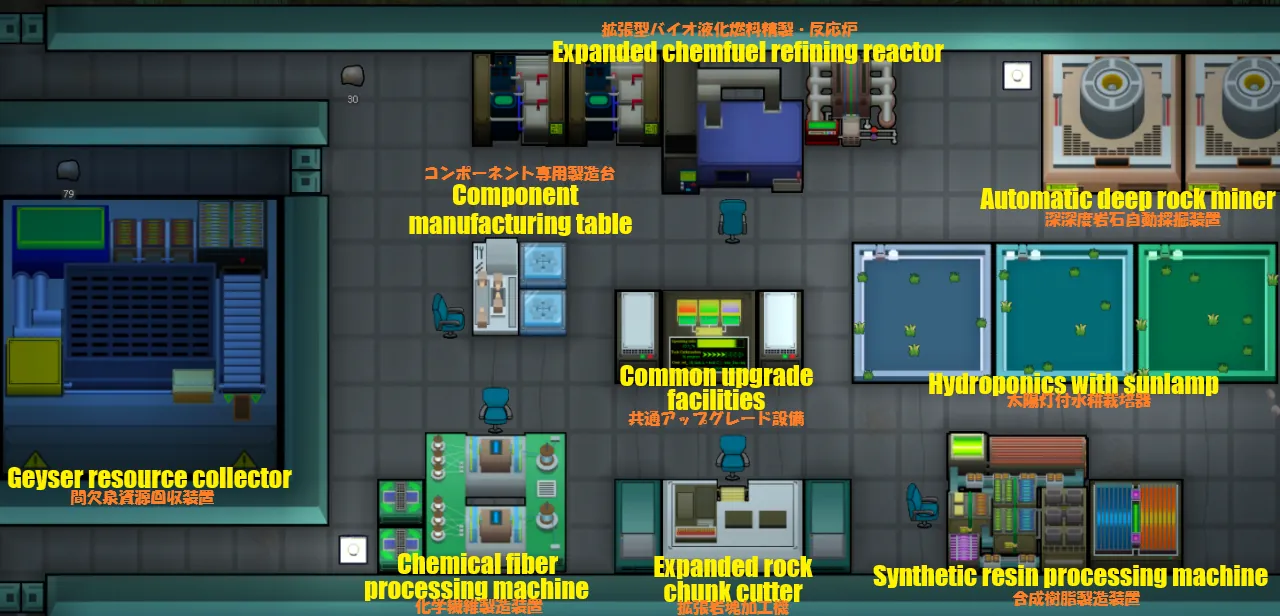 ・本MODで追加される設備の作業速度をアップする共通の設備