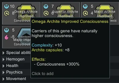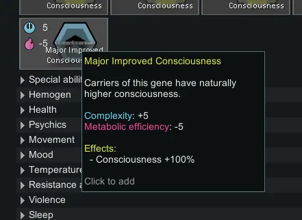 This mod adds genes that offset pawns consciousness.