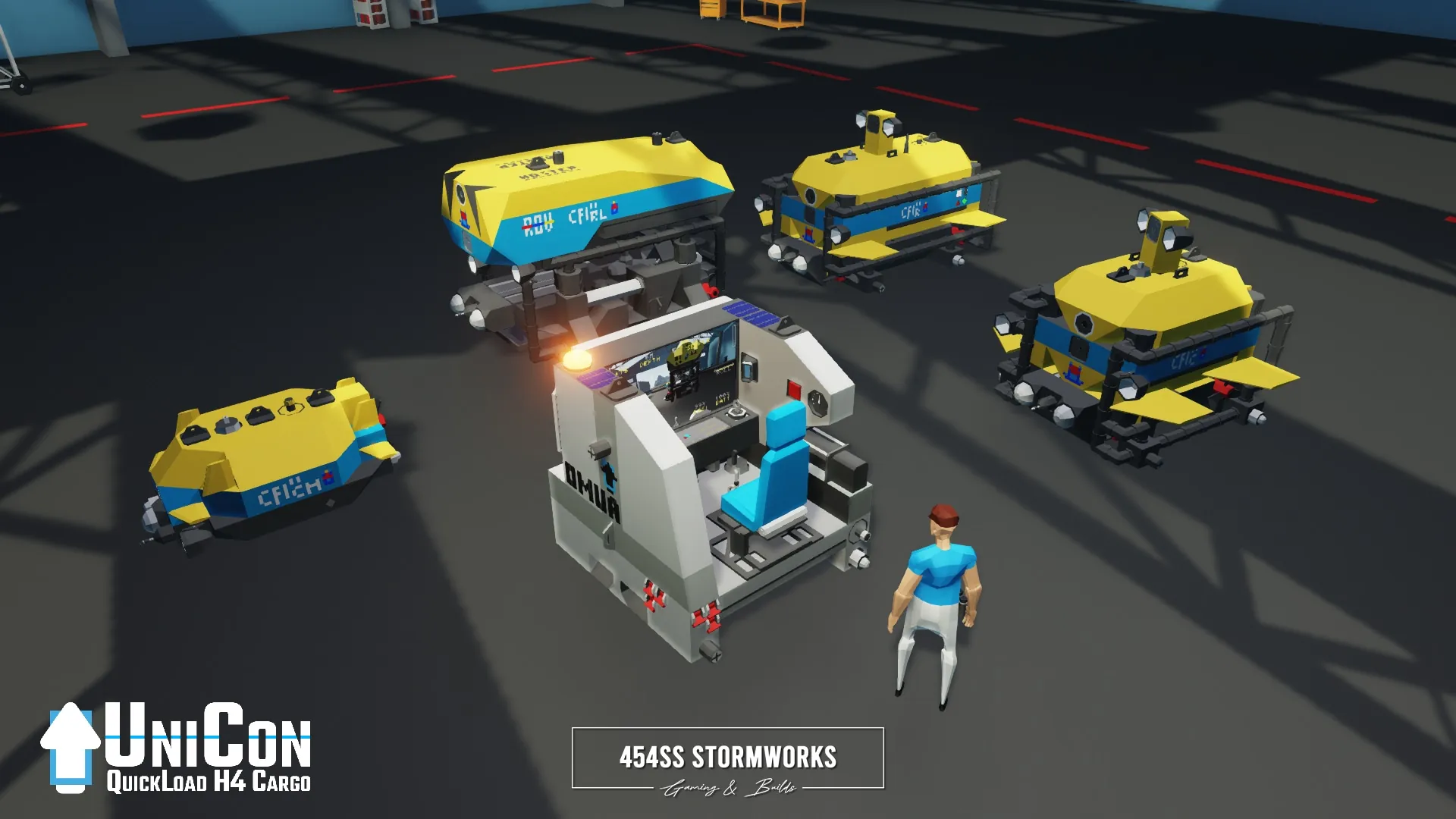 ROV Operator UniCon container owned by OMUA (Oceanic Marine Underwater Agency), a (fictional) multinational marine and research agency. Compatible with all CFI II ROVs. Can be stowed in helicopters, ships, and other vehicles compatible with UniCon or H4 Connector Standards.