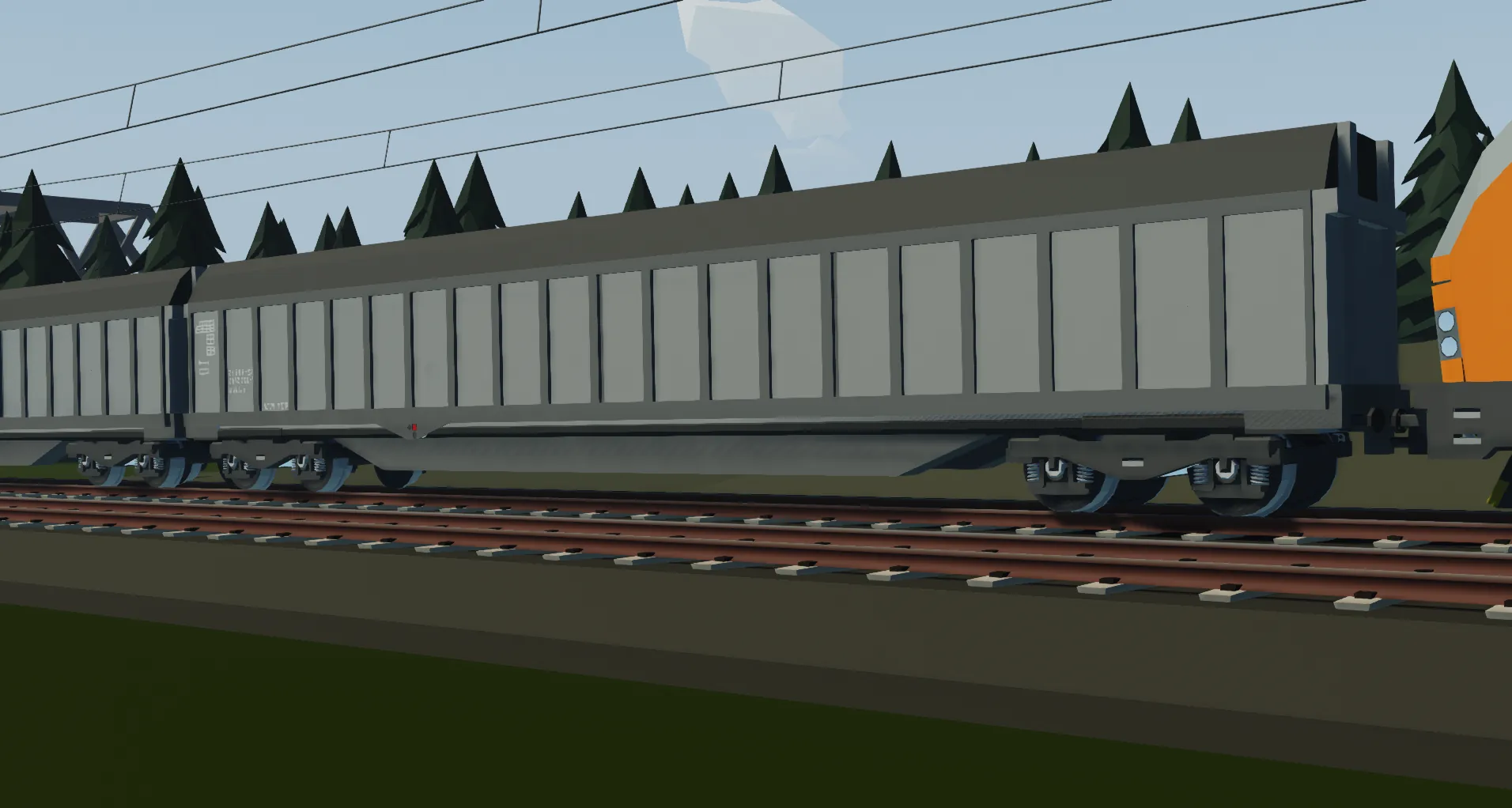 This freight wagon is a rough recreation of the IRL counterpart, but focuses on optimisation for long freight trains