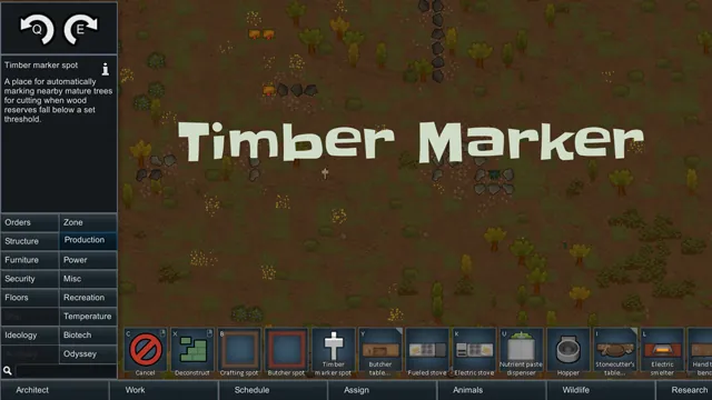 [*] Open the Production menu and click the **Timber Marker Spot** button to place a marker on the map. The marker becomes active immediately.