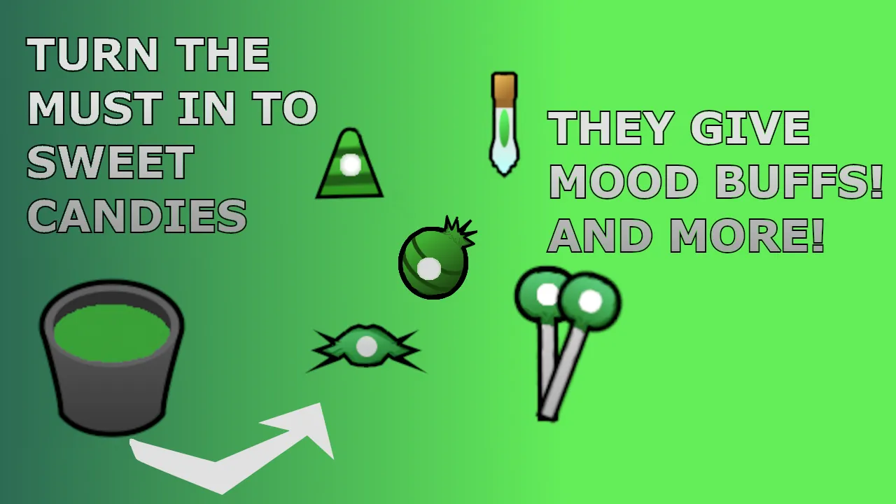 Sweets help to concentrate better, which helps to learn things more quickly. You don't have the risk associated with other drugs based on psychoactive plants. Besides being delicious, your pawns, traders, and raiders will surely love them. So go ahead and make your own candy!