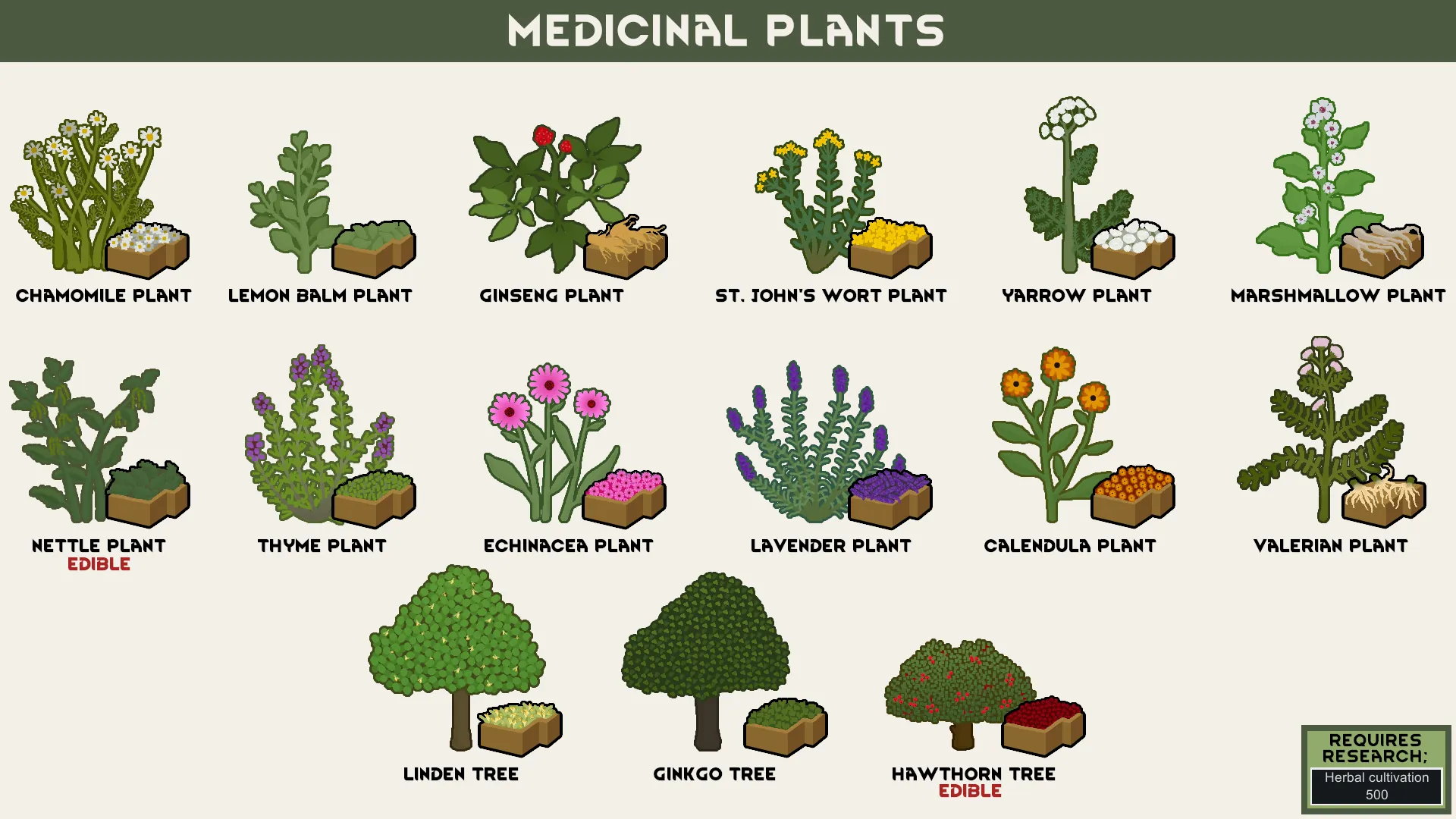 [b]Bring herbal healing to your colony with a vibrant mix of medicinal plants, perfect for soothing wounds, curing illness, and calming the mind.[/b]