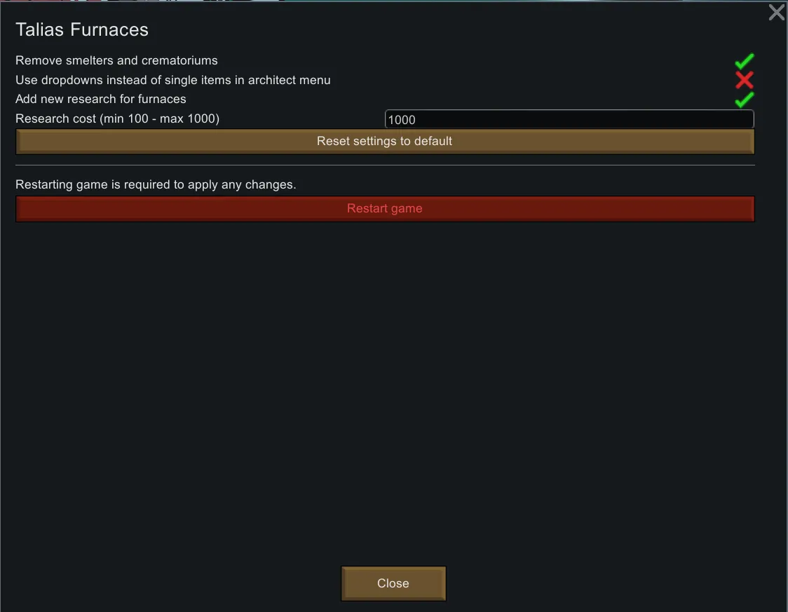 [*] Adds three new buildings - Electric Furnace, Fueled Furnace, Chemfuel Furnace, that inherits recipes from both Electric Smelter and Electric Crematorium.