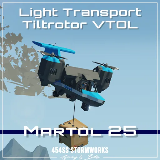 The Martol 25 is a mid-sized executive tiltrotor vtol, developed and built by (fictional) Martol Avion, based in Iceland, which is a subsidiary of American based company Dougcraft Avionics. Bristling with automated systems and capable of high-speed travel, the Martol 25 is a capable of land based operation or deploying from a vessel. Measuring only 8.5 meters in length and weighing less than 1500 lbs, the Martol 25 can reach speeds over 140 knots while carrying 10 passengers. The spacious and open viewed cockpit provides excellent visibility, and boasts digital displays that operate the advanced autopilot, heading hold, beacon locator, GPS, altitude/position hold, and fuel consumption calculator.