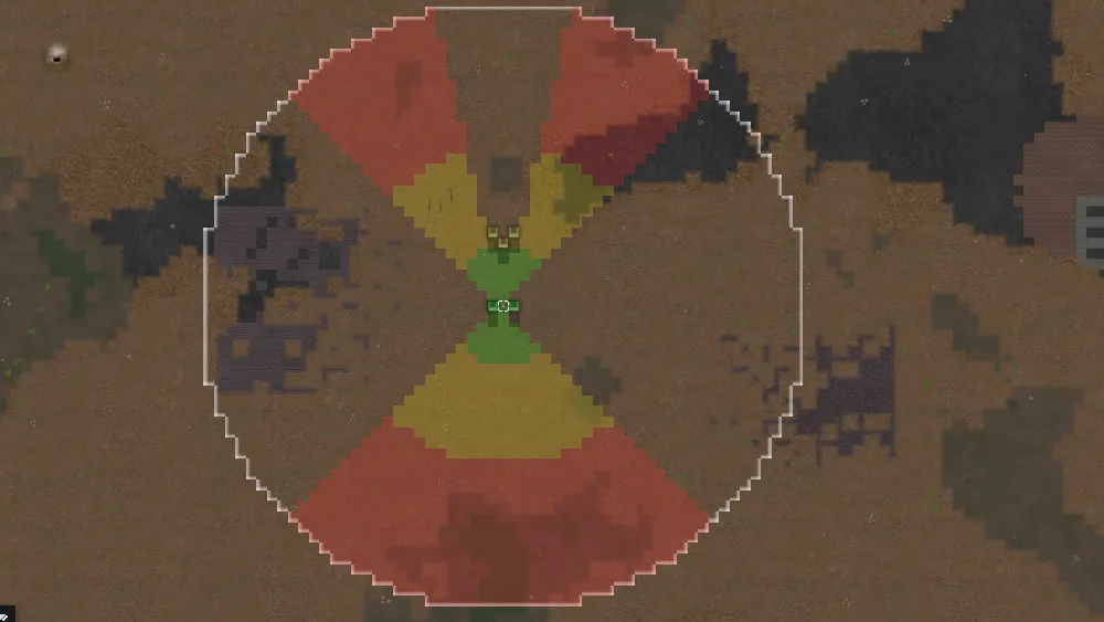 [*] Draws a [b]filled zone[/b] of cells your turret can actually target, respecting walls, cover, and min/max range.