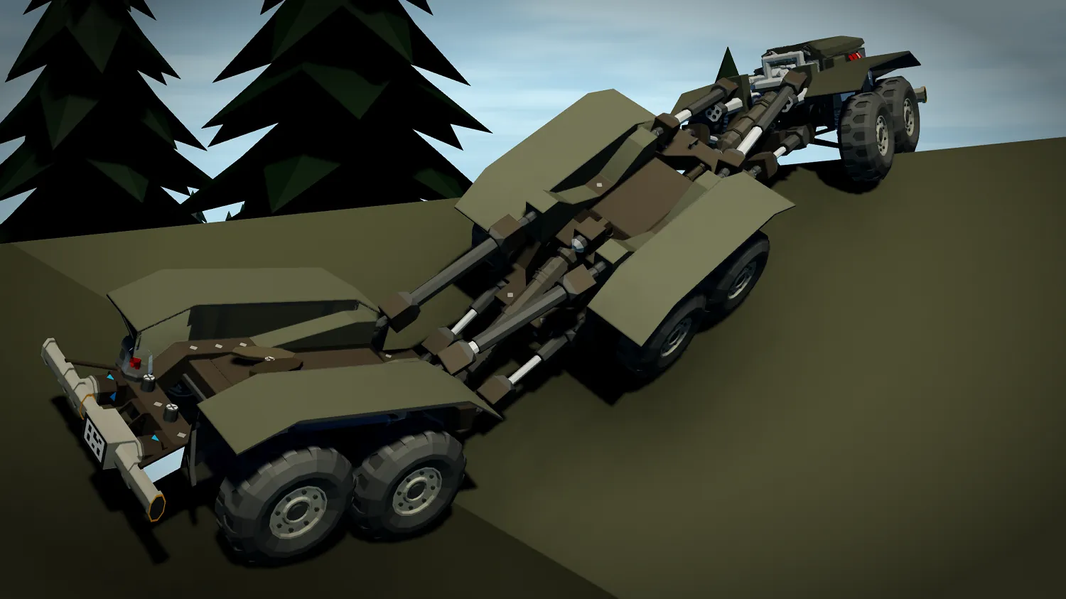 This is a modular offroad vehicle. It features complex articulation, a fifth wheel and a V10 Engine.