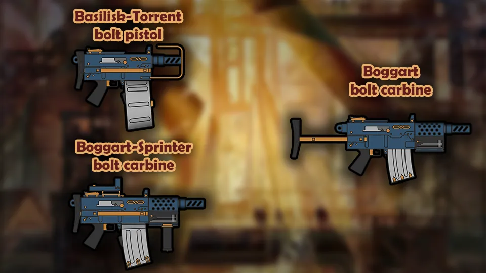Chambered for 17.8mm rocket-propelled explosive bolts, these bolters form the core of Vagar infantry weapons. Capable of ripping off limbs and shredding internal organs with but a single hit, these firearms are not to be trifled with. Countless insectoid hives and pirate strongholds were purged by the stalwart Vagar wielding these signature weapons. However, this power comes at a cost, as both the bolters and their ammunition are bulky, heavy and difficult to manufacture, making them a rare sight on the Rim.
