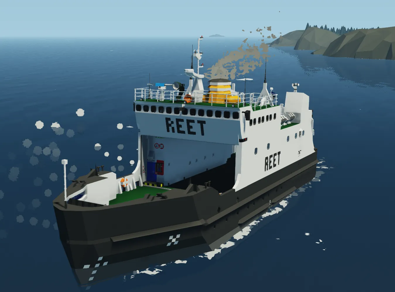 A ferry originaly made in 1971 in Norway Bergen, back then known as "OSTER" later sold to Estonia and renamed "REET" to this day sails between Pärnu and Kihnu delivering supplies and transporting civilians between the mainland and the small island. I made her as 1:1 copy as close as i could whit the materials i had, i am a local but never have been on her, only seen her close in port so the inside of the ship is not so accurate, but anything outside i tryed to make as close as possible to the real thing, the dimensions are so perfect including the power of the engine and weight that on ful throtle it still moves as fast as the real thing. there is not too much antibug features seen to make it act realistlic, the one most easily seen is the triple rudder to make it steer a bit better, (btw it does have variable pitch propeller in real life). i will update it if yall give me feedback and if i get any info about the inside of the ship. it took me around 30 hours and 10 days to make so not too difficult and i would call it the best one off ive ever made so far.
