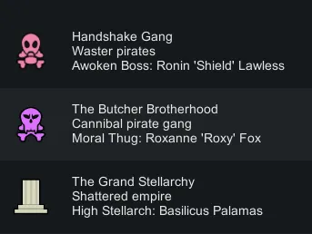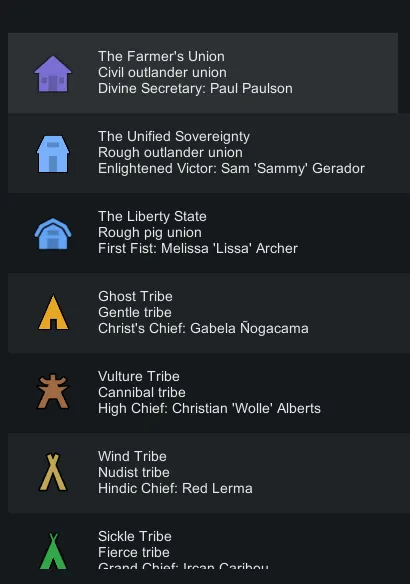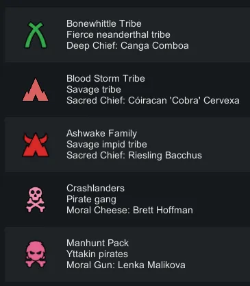 I got tired of seeing indistinct and boring names for factions, so I added some static names based on what felt unique & thematically appropriate. See thumbnail & preview images for examples.