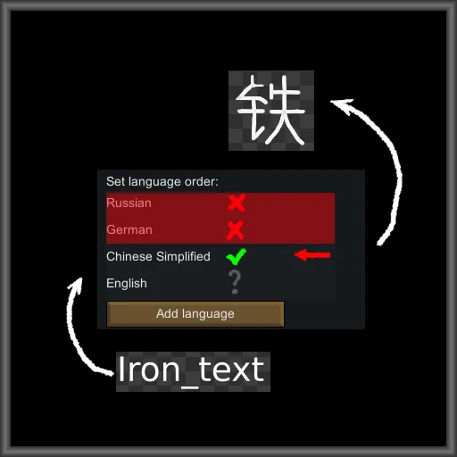 Or language queue. Add option, to set adiction languages for game if some text hasn't translated. game will be try to translate world until it finds any language in your order list that can do it. multilanguage, if I may. code inside. CC0