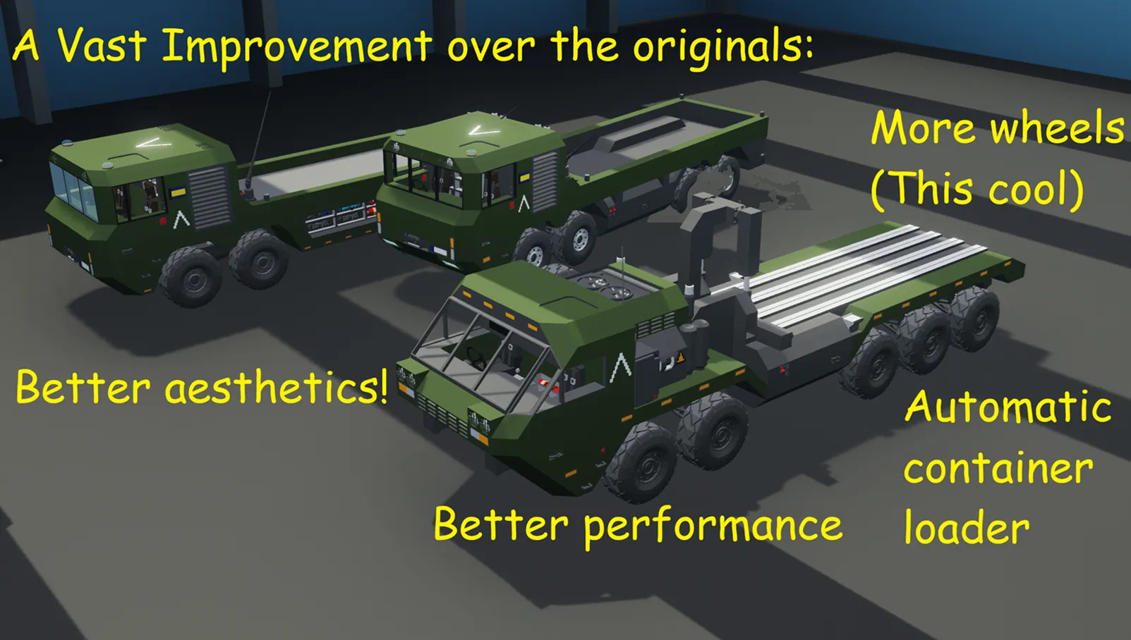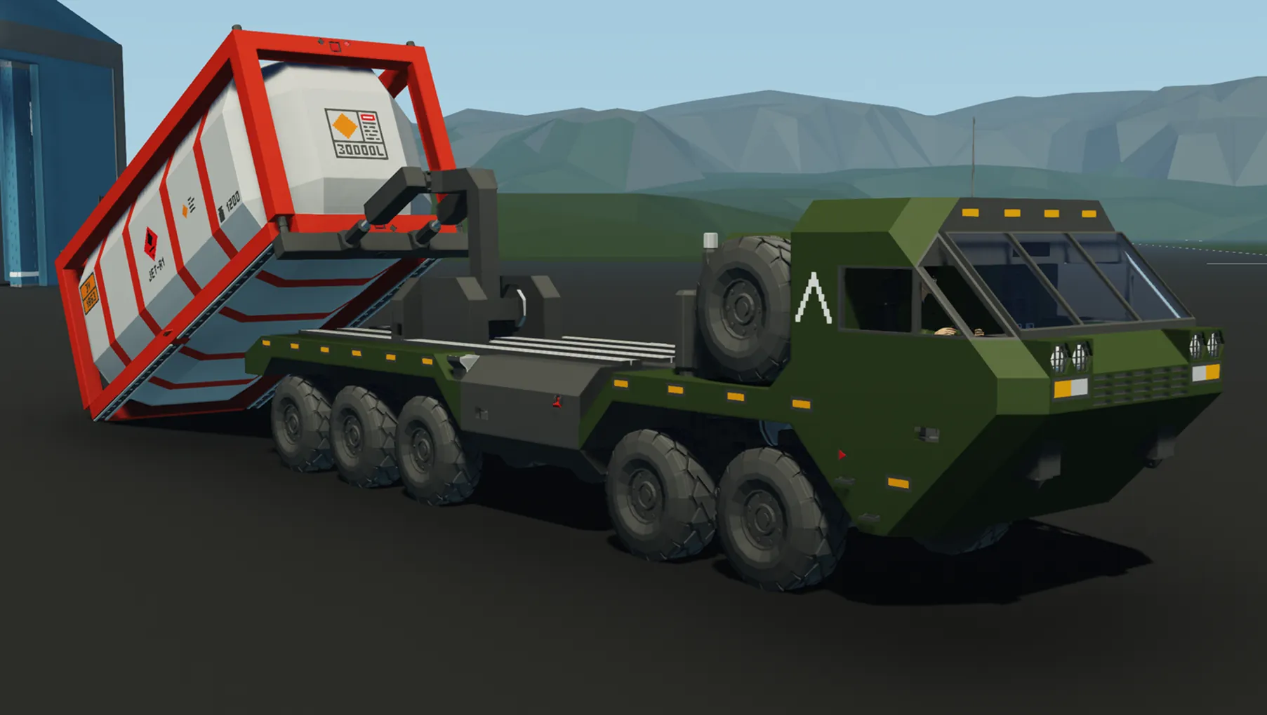 A highly mobile military logistics vehicle loosely based on the HEMTT.