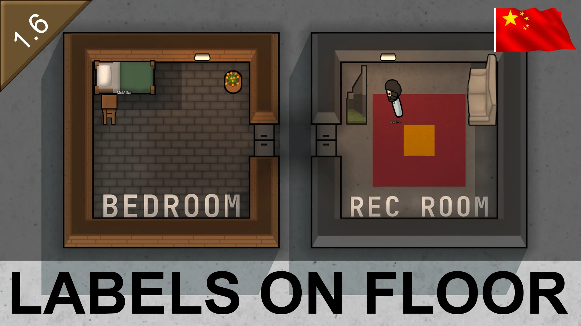 将房间与区域名称直接显示于地面,正如《监狱建筑师》的风格!完美适用于管理复杂基地并提升游戏体验清晰度。