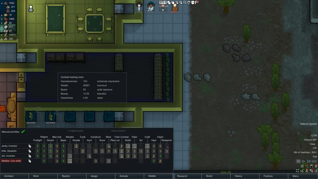 • Get a mood buff for having an impressive Combat Training Room.