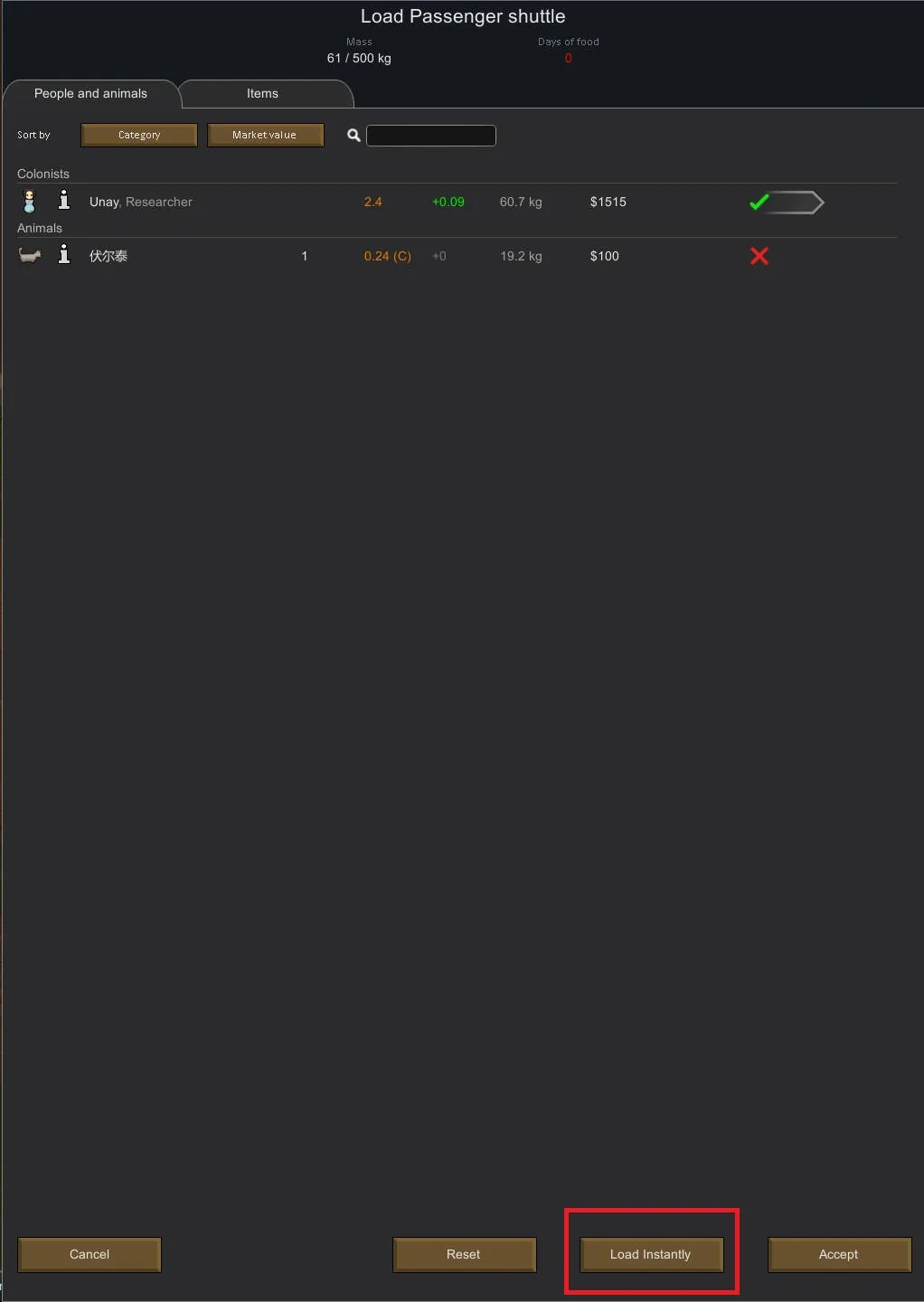 When you open the loading interface, an extra option “Load Instantly” is provided. Its function is: after you have selected the items to load, you can click this button to load them immediately.
