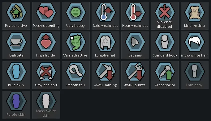 Added 3 genes to the Highmate xenotype: cat ears, smooth tail (+5% Manipulation), and cold weakness (+5 C to min comfortable temperature) to keep metabolism at 0.