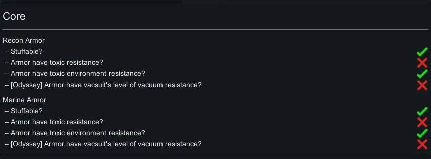 Ah, yes! Toxic and toxic environment resistance patches! First of all, toxic environment resistance was a Biotech-exclusive stat pre 1.6 patch, so on 1.5 you want be able to see it as an option if you don’t have Biotech installed. This is also true for all other mod options. If you don’t have Royalty, there will be no visible Royalty-related patches in the mod options and so on. Personally, I think that unlike with toxic environment resistance giving armor toxic resistance is a bit overpowered, but I added that option for those who don’t think that way. The amount of resistance armor gives depends on its tier. Recon and analogs – 50% (15% Helmet + 35% Body), Marine and analogs – 75% (20% Helmet + 55% Body), and Cataphract and analogs – 100% (25% Helmet + 75% Body).