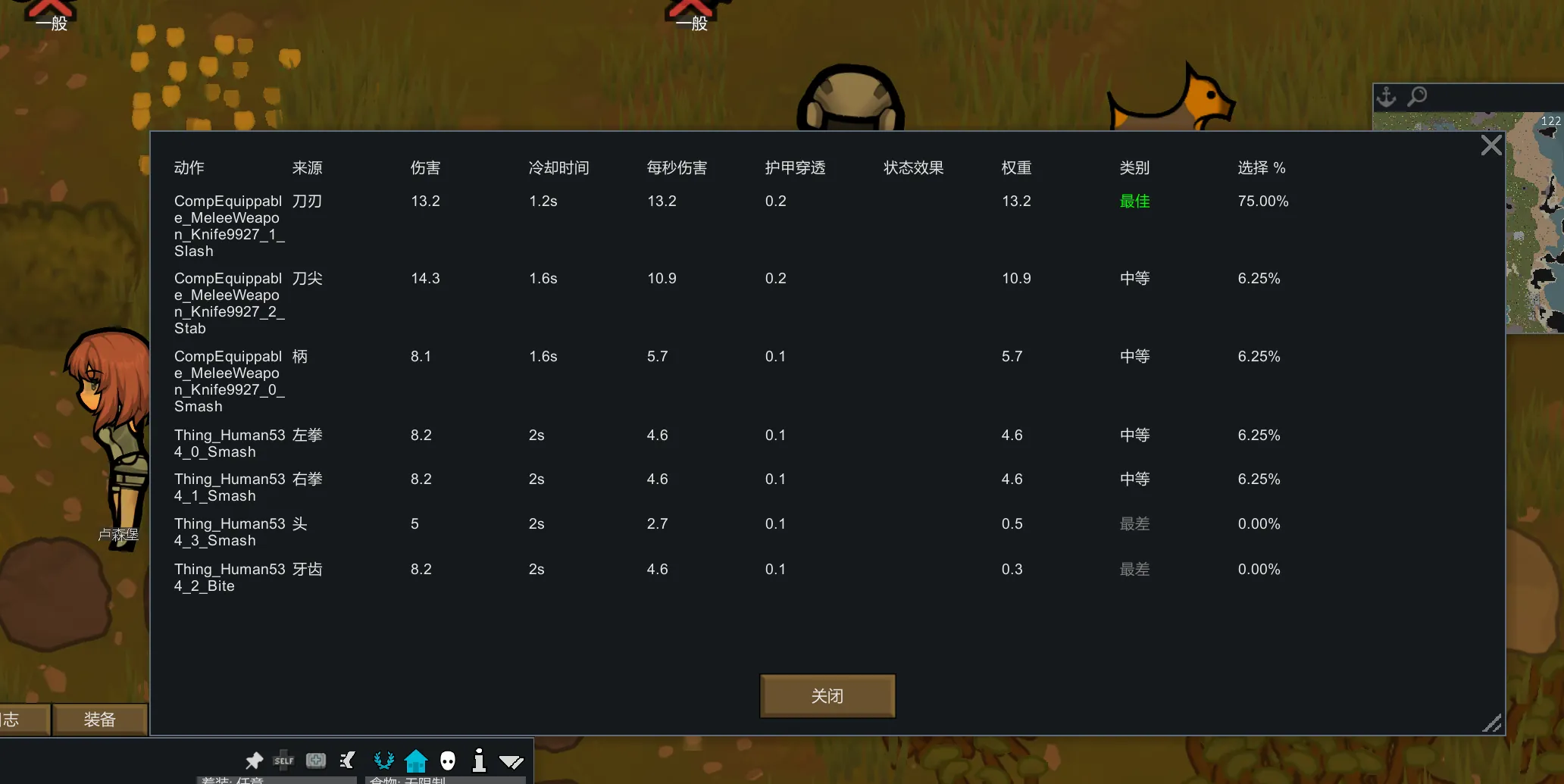 You can see the melee actions currently available to a pawn and the probability of each action being used. In addition, if the pawn’s position allows for terrain-based attacks (such as kicking sand or splashing water), there is a fixed 4% chance of performing a terrain attack.