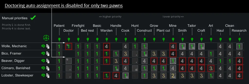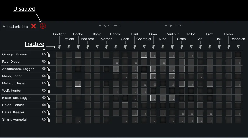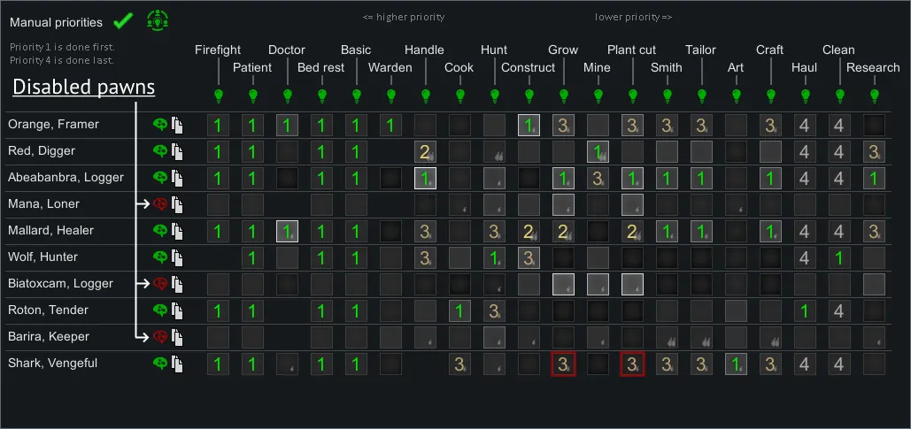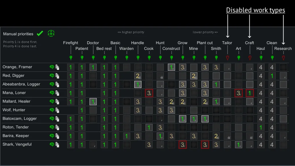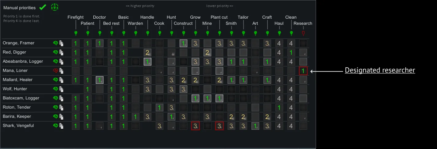 [*] [b]Priority 1[/b]: Dedicated roles or highest-skilled colonists.