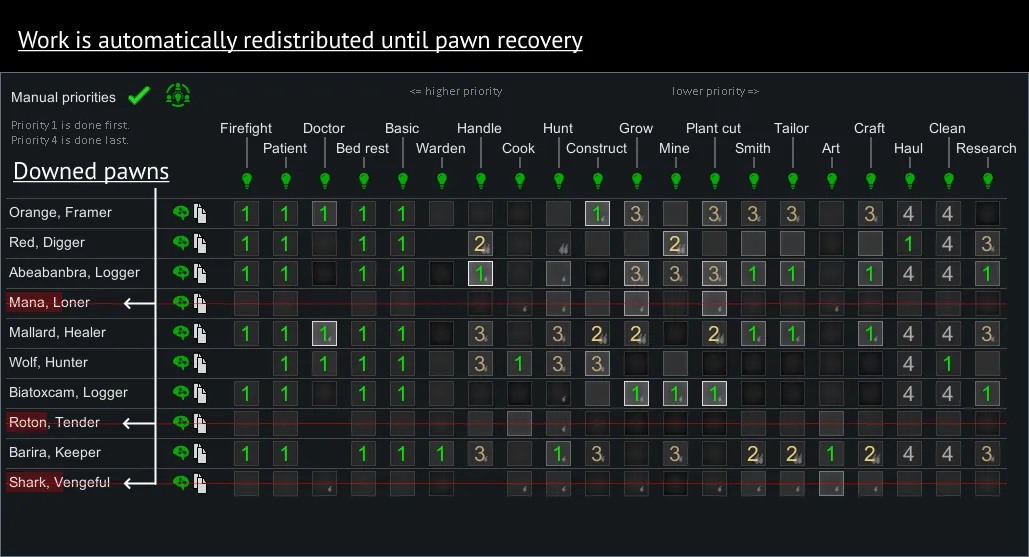 [*] Adjust priorities on a per-work-type basis or even per pawn-task with a simple middle-click!