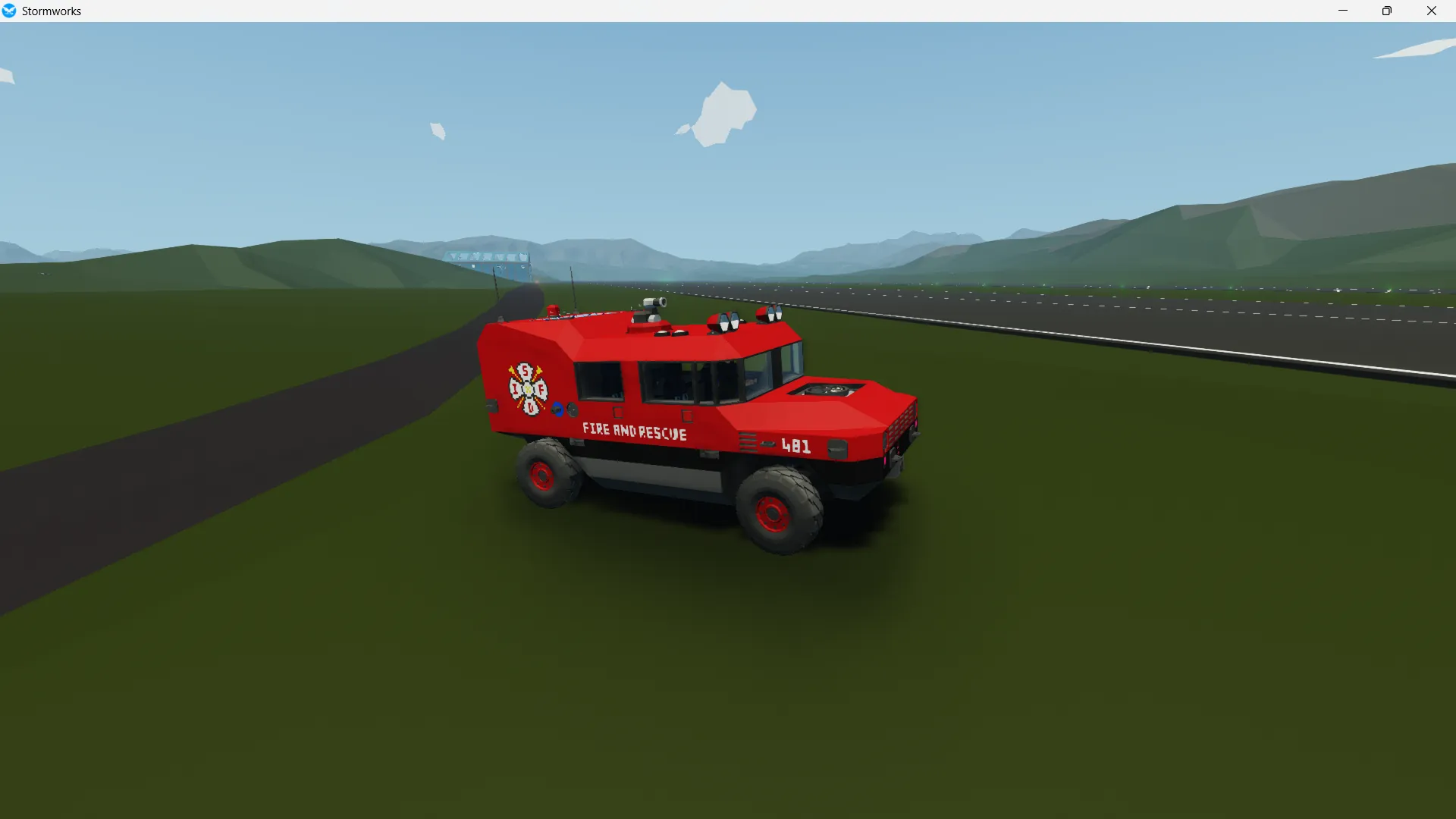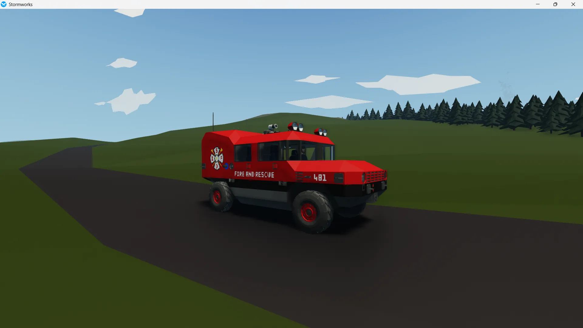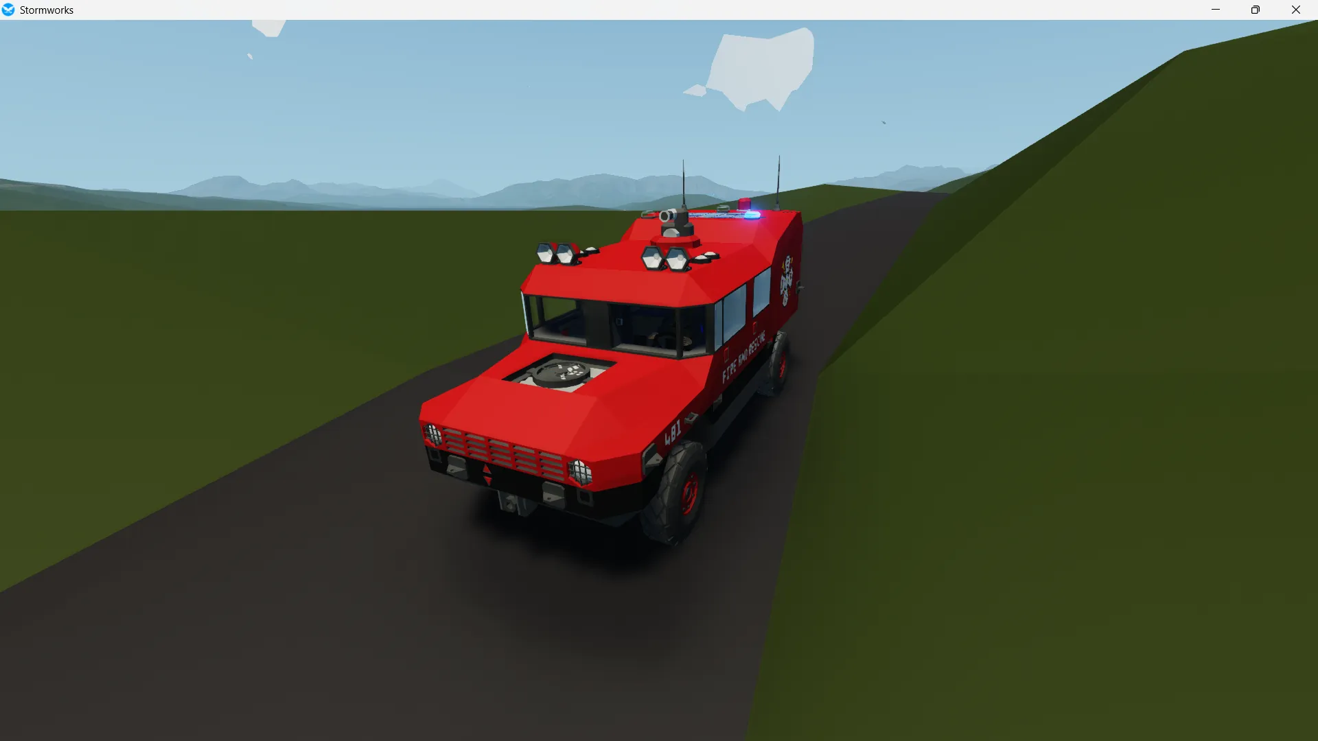 the newest variant of the ARC1000 series is built for rapid response and wildfire fighting duties and is outfitted for the sawyer island fire department. it caries four passengers and has equipment for them in the rear. it also caries a water canon attached to reasonably sized water tank allowing the car to directly battle blazes from a safe distance.