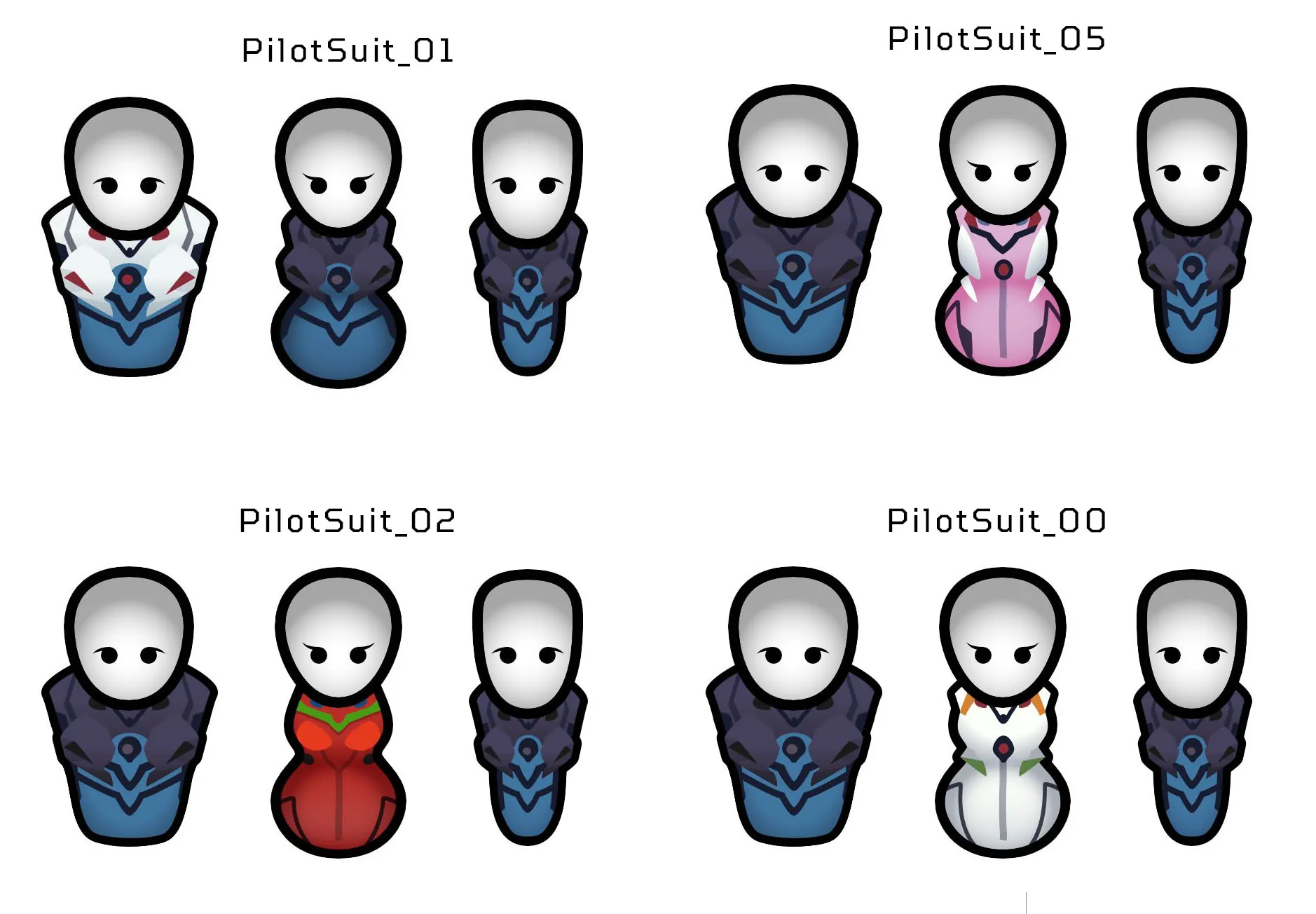- The NERV suits only appear on their specific gender's bodies, and the rest are using SEELE suit texture. That means thin pawns don't have a unique suit. See image for visual guide.