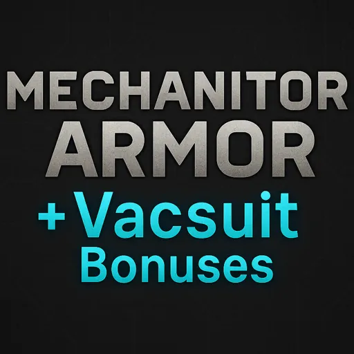 Tweaks the Mechcommander Helmet and Mechlord set to match the Vacsuit set bonuses so your Mechanitors can help in space without sacrificing bandwidth. Also adds the missing 20% of Toxic Environment Resistance to the Vacsuit.
