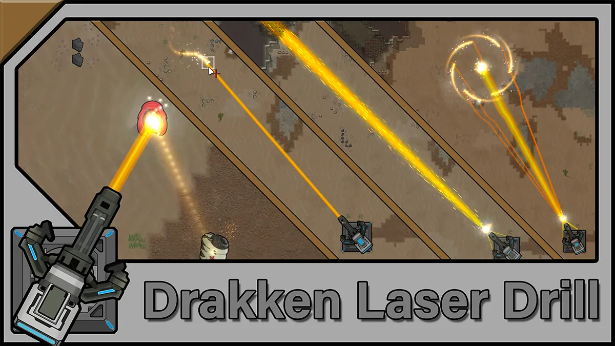 This Mod provides a giant laser turret that can be upgraded infinitely through research technology: Drakken Laser Drill (technology need: Electricity)