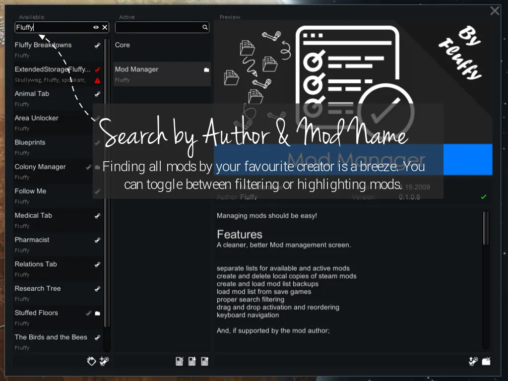 [*] separate lists for available and active mods