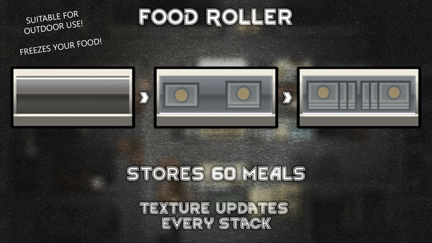 This mod fully implements bulk storage solutions for all of your uorganized needs. This includes an outdoor suitable freezer that can store perishable meals and ingredients, updating textures for nearly all storage objects, and some paintable structures to make these objects fit into your colony a bit more.