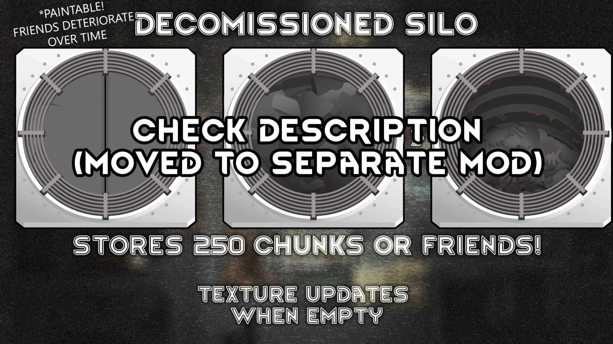 [b]I had a rights conflict issue regarding the corpse/chunk storage portion of the mod, and moved the corpse portion of the mod to a separate mod where deadlife is required to be subscribed. [/b] LINK: [url=https://steamcommunity.com/sharedfiles/filedetails/?id=3520137249]https://steamcommunity.com/sharedfiles/filedetails/?id=3520137249[/url]