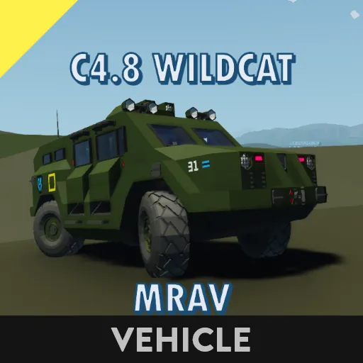 designed to replace the older lynx platform, the wildcat multi role armored vehicle is the ultimate infantry squad car. carrying a full squad of 8 troops, the wildcat provides good protection from light weapons fire and has an advance set of protection systems including radar warning, chaff and automatic fire suppression. its good off road and has excellent fuel range. it's standard turret also provides good basic offence and fire support.