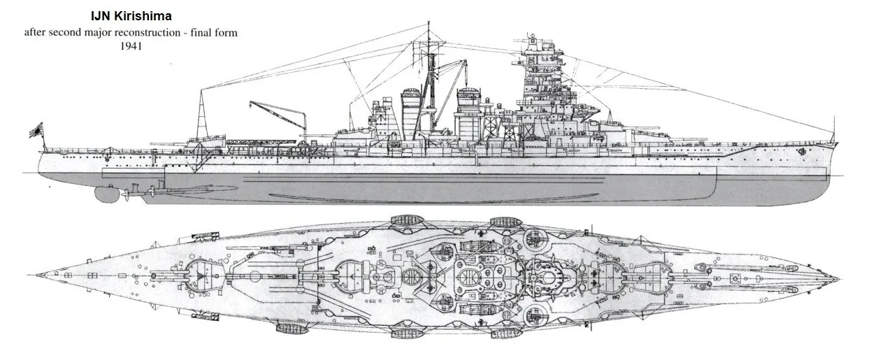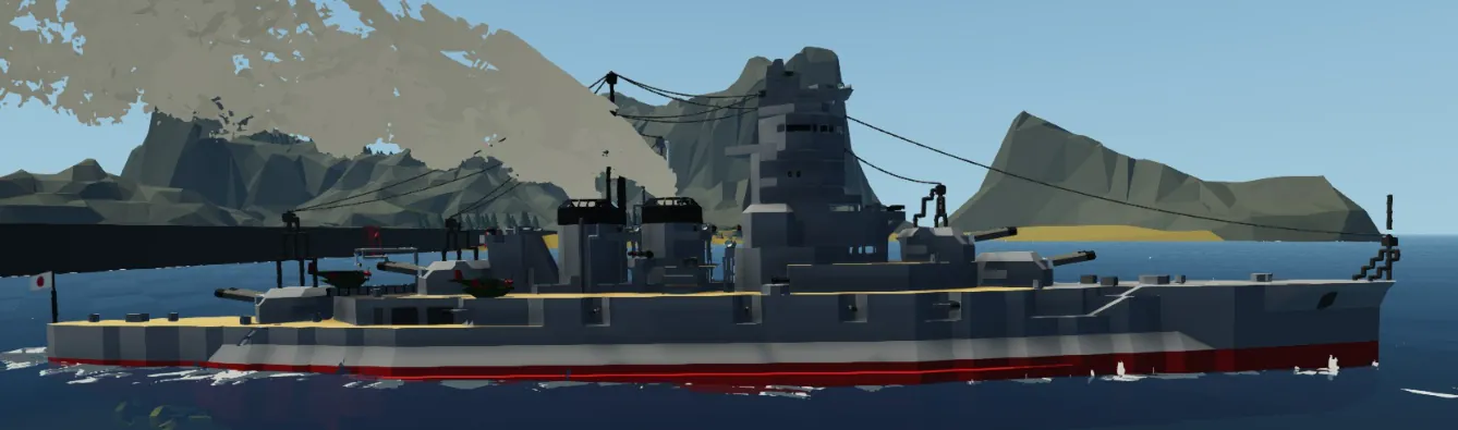 this is the 1941 version of the Battle cruiser Kirishima It is a ~1/12 size replica has movable gun batteries (Primary and Secondary) Can go as fast as 8 knots