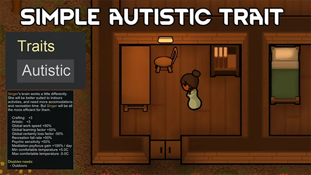 I know Autism can be a lot more complex than the way I have depicted it here, It's really just a quick test as an early mod. I plan on making a more in-depth one once I've levelled up a bit.