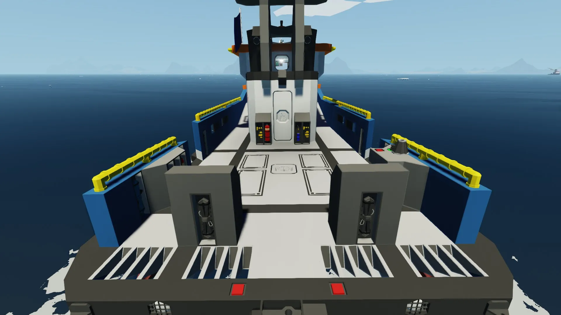 You can control the ship from the right seat and the water cannon from the left.