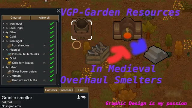 Allows the intermediary ressources from VGP - Garden Resources to be smelted in Medieval Overhaul's smelter buildings.