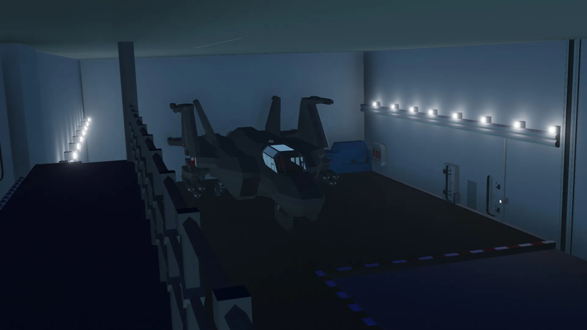Features a hangar with space for a few planes or helicopters, A fueling station [currently only for jet fuel right now], Charging Stations for aircraft, An anti air missile turret, Long range radar, and Deck lighting,
