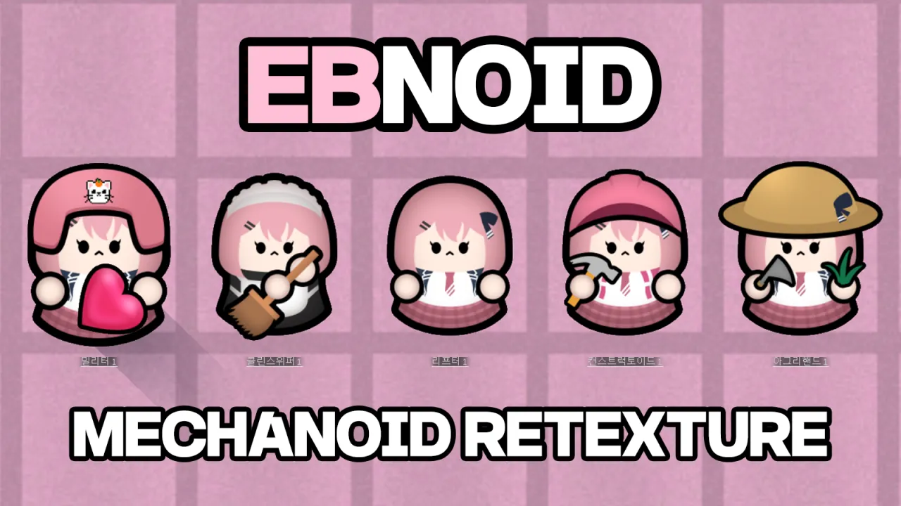 메카노이드를 이비로 바꿔주는 단순 리텍스쳐 모드입니다. This is a retexture mod that replaces the Biotech Mechanoids with the character "EB"