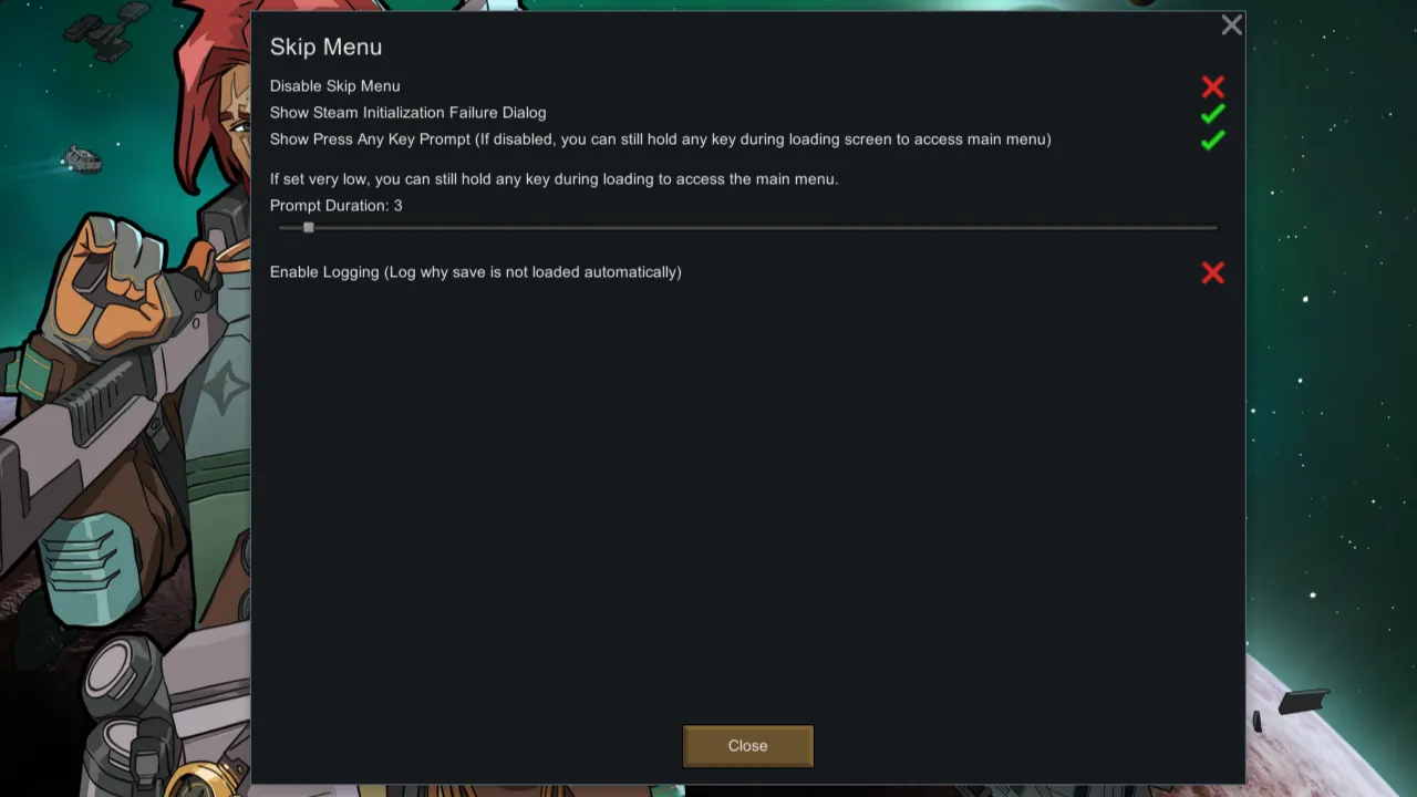 [*] Even with the prompt disabled, holding any key during game loading will show the main menu