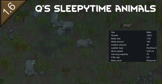 This XML patchset is designed to use the Vanilla Expanded Framework's additional "ExtendedRaceProperties" mod extension to allow animals to be set to a circadian rhythm cycle other than Diurnal (daytime activity). It does not 'globally' apply, mods will be added to this by request if the animals logically would be Nocturnal (night activity) or Crepuscular (dawn and dusk activity).