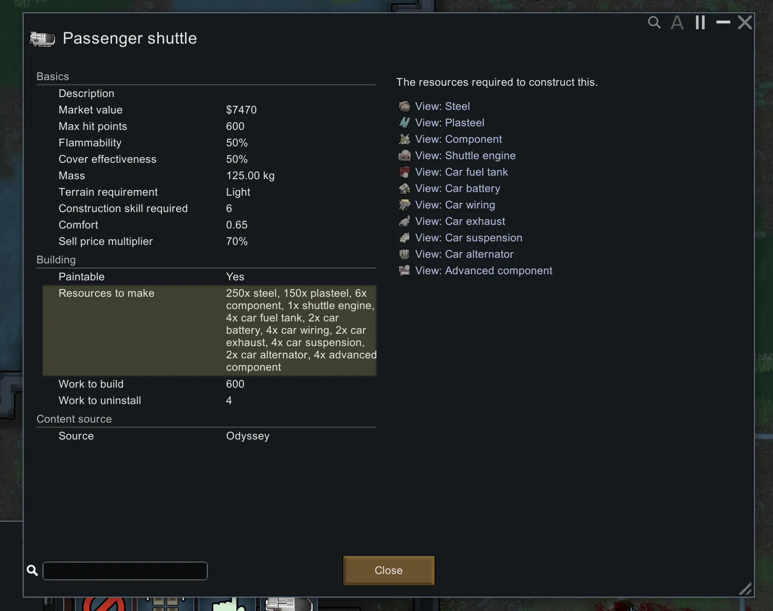 Odyssey’s new shuttles can make earlier VVE vehicles feel obsolete. This patch rebalances things by raising shuttle build costs and integrating Vanilla Vehicles Expanded parts into those shuttles.