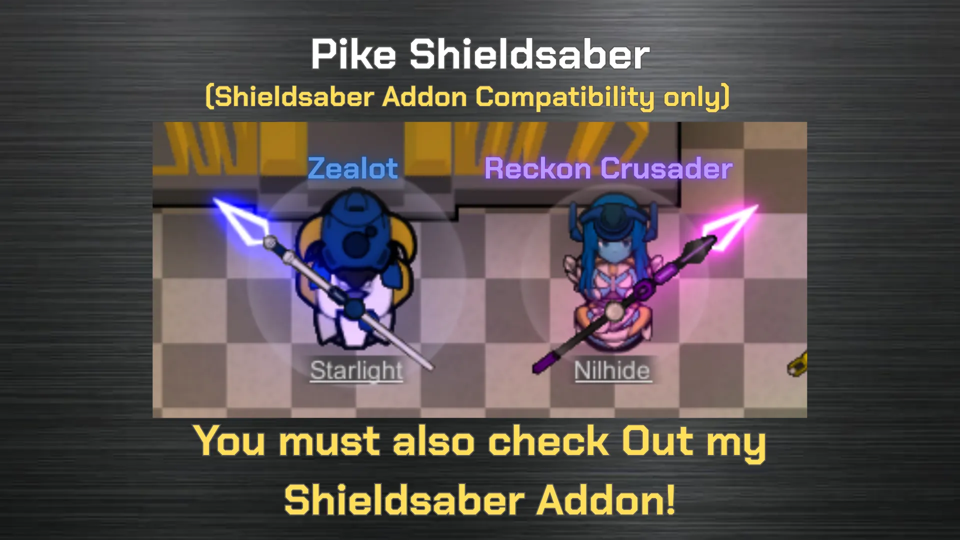 With this mod, Pike Shieldsaber and Pickaxe Shieldsaber will be added. Which give the weapon with name "Shieldsaber" to have shield ability.