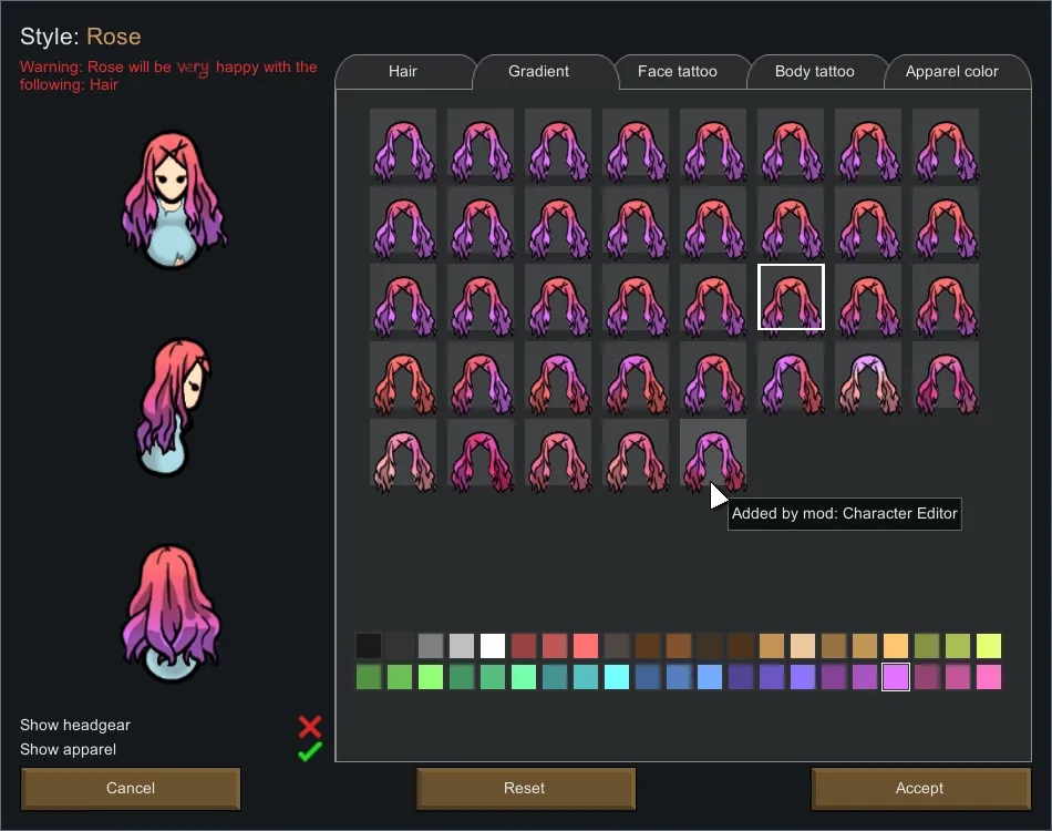 (note that after setting hair color you'd still have to remake pawn's graphics yourself, see those two lines: [url=https://steamcommunity.com/linkfilter/?u=https%3A%2F%2Fgithub.com%2FAUTOMATIC1111%2FHairDye%2Fblob%2Fbaaf8e59fc5d57744171892468a8f47e75591385%2FSource%2FJobDriver_ChangeHairColor.cs%23L68]1[/url][github.com][url=https://steamcommunity.com/linkfilter/?u=https%3A%2F%2Fgithub.com%2FAUTOMATIC1111%2FHairDye%2Fblob%2Fbaaf8e59fc5d57744171892468a8f47e75591385%2FSource%2FJobDriver_ChangeHairColor.cs%23L69]2[/url][github.com])