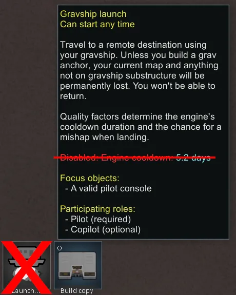 Removes the engine cooldown restriction for Gravships, allowing instant relaunch without waiting. Safe to add or remove from saves. Requires the Odyssey DLC to function.