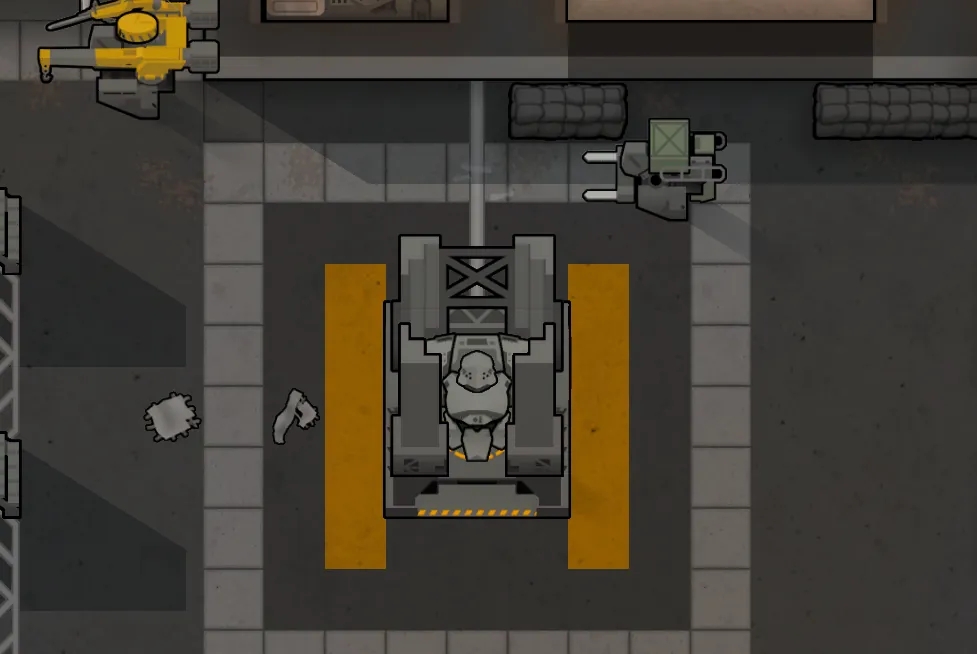 This heavy-duty exoskeleton may not be as flexible as power armor, but counting the size and number of gun barrels, you are sure that it must have good firepower.