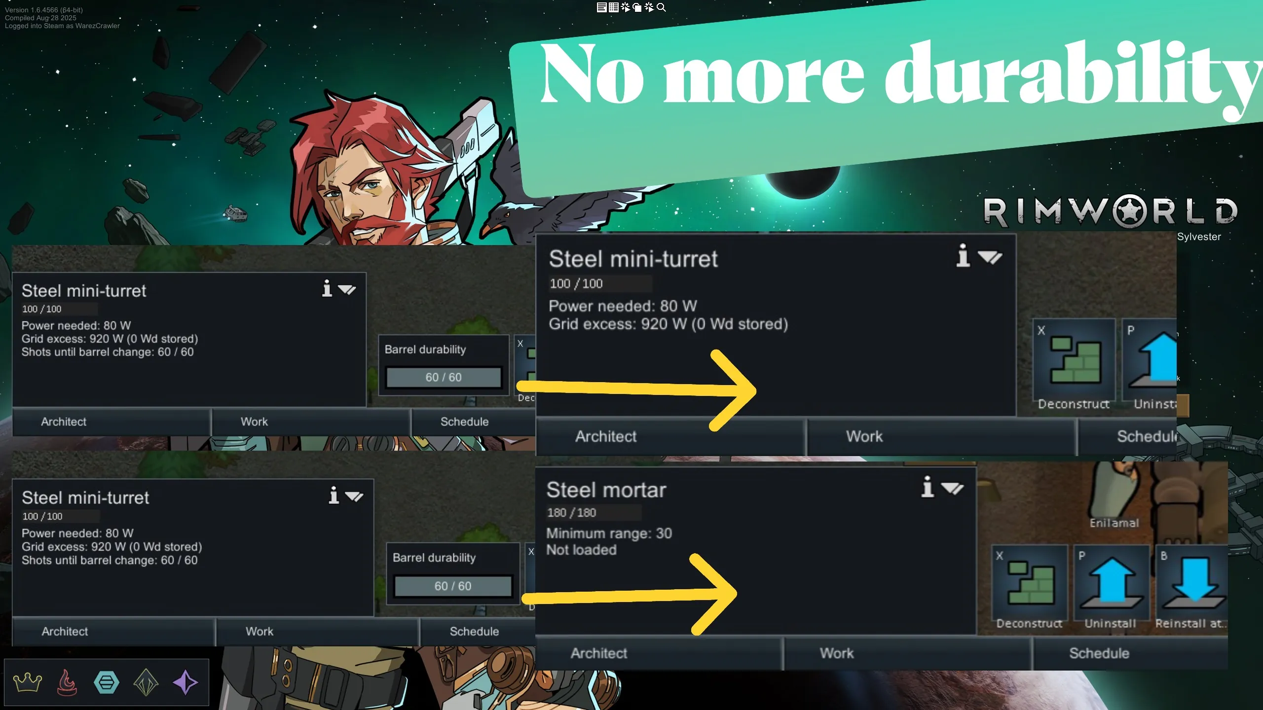 Refuelling of turrets and change of mortar barrels was introduced to Rimworld a while back. I was never a fan of this change.
