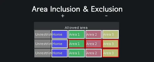 This mod make you can choose multiple allowed area and exclude some areas.