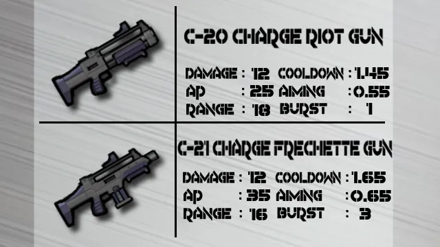 を念頭に置いた性能になっており、バニラのチャージライフルより生産コストが高い代わりに扱いやすい性能を心掛けました。
