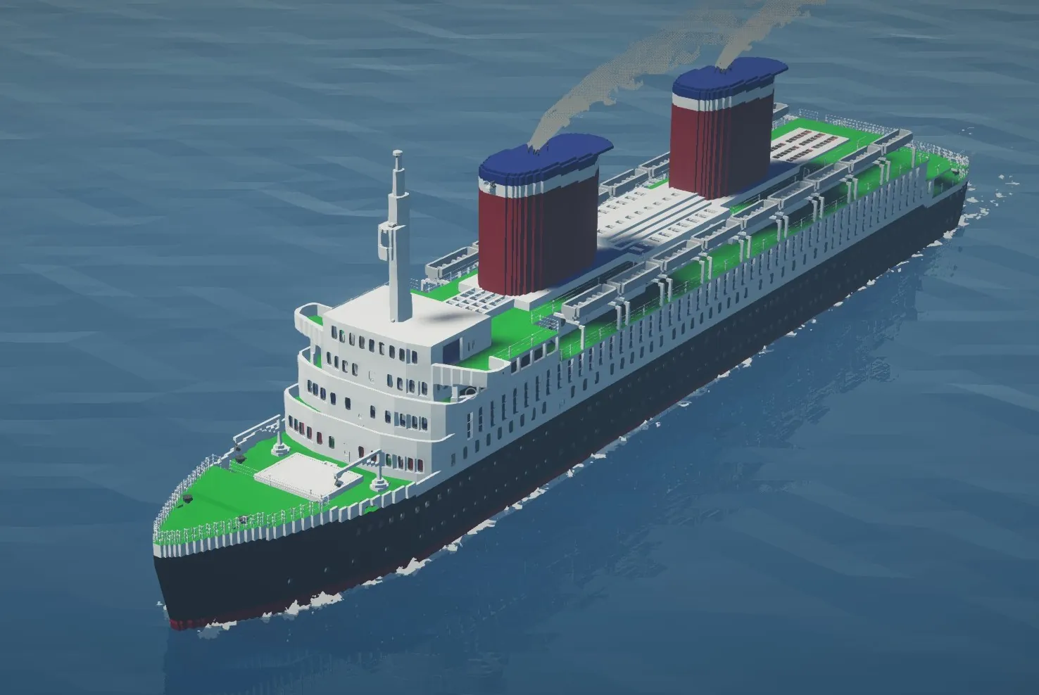 I'm very proud to present my latest creation, the SS Revolution! She's heavily based off of the SS United States, and is my most detailed ship to date.